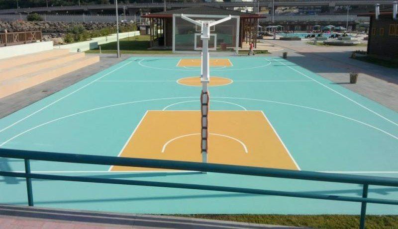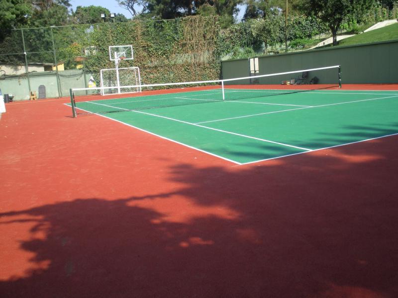 draußen für Tennisplätze und Sportplätze. Unser System basiert auf Acrylemulsion sehr beständig gegen UV und äußere Einflüsse. Es ist speziell für Tennisplätze konzipiert und kann für Basketball-, Volleyball- und Außenbereiche angewendet werden. Der Rhythmus und der Flexibilität des Geländes